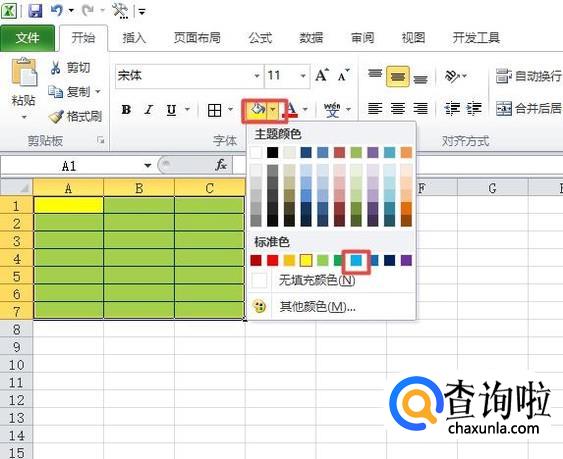然后我点击工具栏中的填充颜色按钮边上的下拉箭头,弹出的界面,我们选择另外一种颜色;
