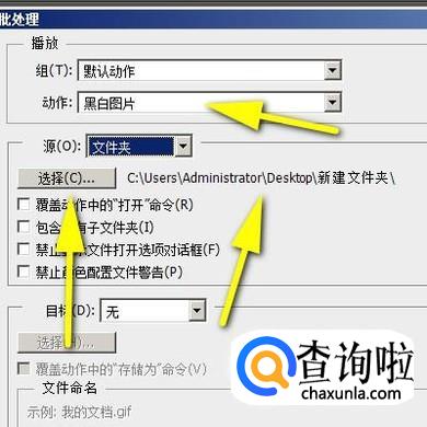处理界面的动作这里选择刚才录制的”黑白图片“这个动作。