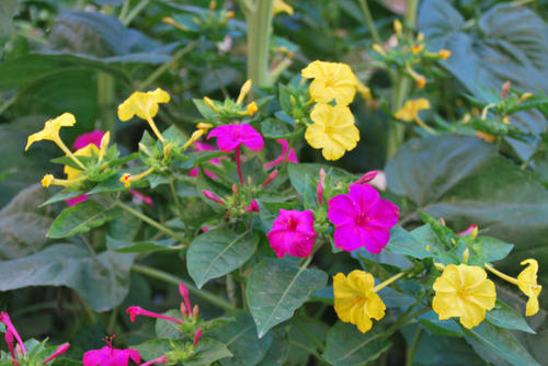 草茉莉紫茉莉科紫茉莉属,为多年生草本植物原产美洲热带,喜温暖,怕霜冻。紫茉莉科紫茉莉属,为多年生草本植物,常作一年生栽培。株高60~1 OOcm。主根肥大块状。茎多分枝、节部膨大。叶对生、卵形。花漏斗形、芳香,数朵集生枝端;有紫红、粉、白、黄以及具斑点或条纹的嵌合复色品种。