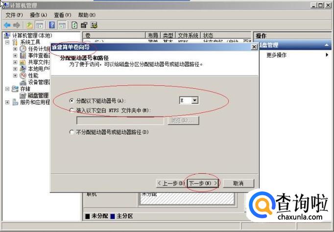 唤出"分配驱动器号和路径"选项界面,如图所示。勾选"分配以下驱动器号"单选框,分配驱动器号。