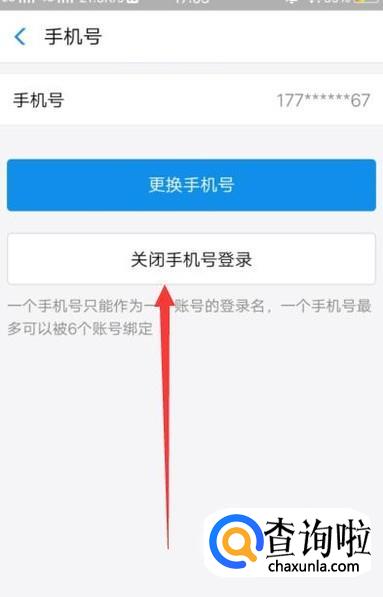 进入之后,点击“关闭手机号绑定”即可与手机取消绑定,如图所示。