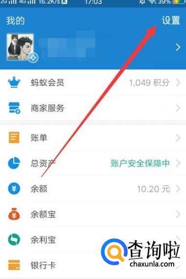 进入之后,点击“设置”,进入下一页面,如图所示。