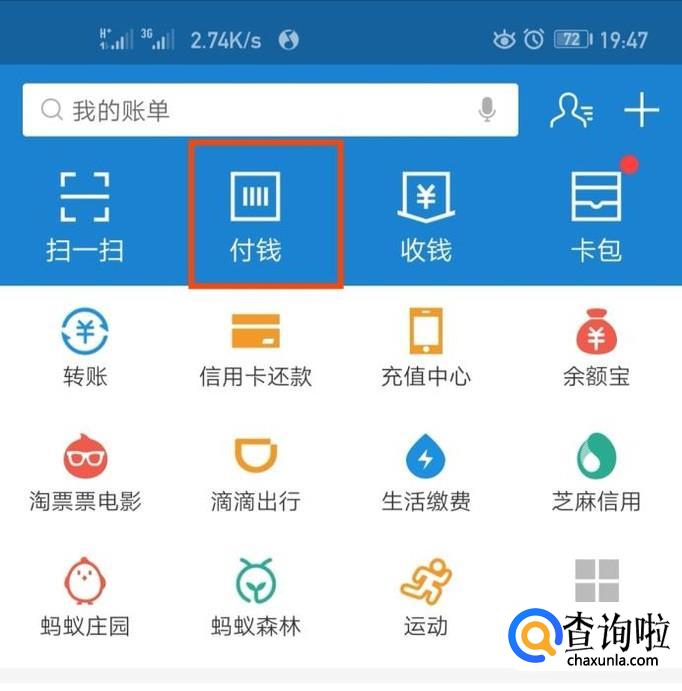 找到“付钱”按钮。