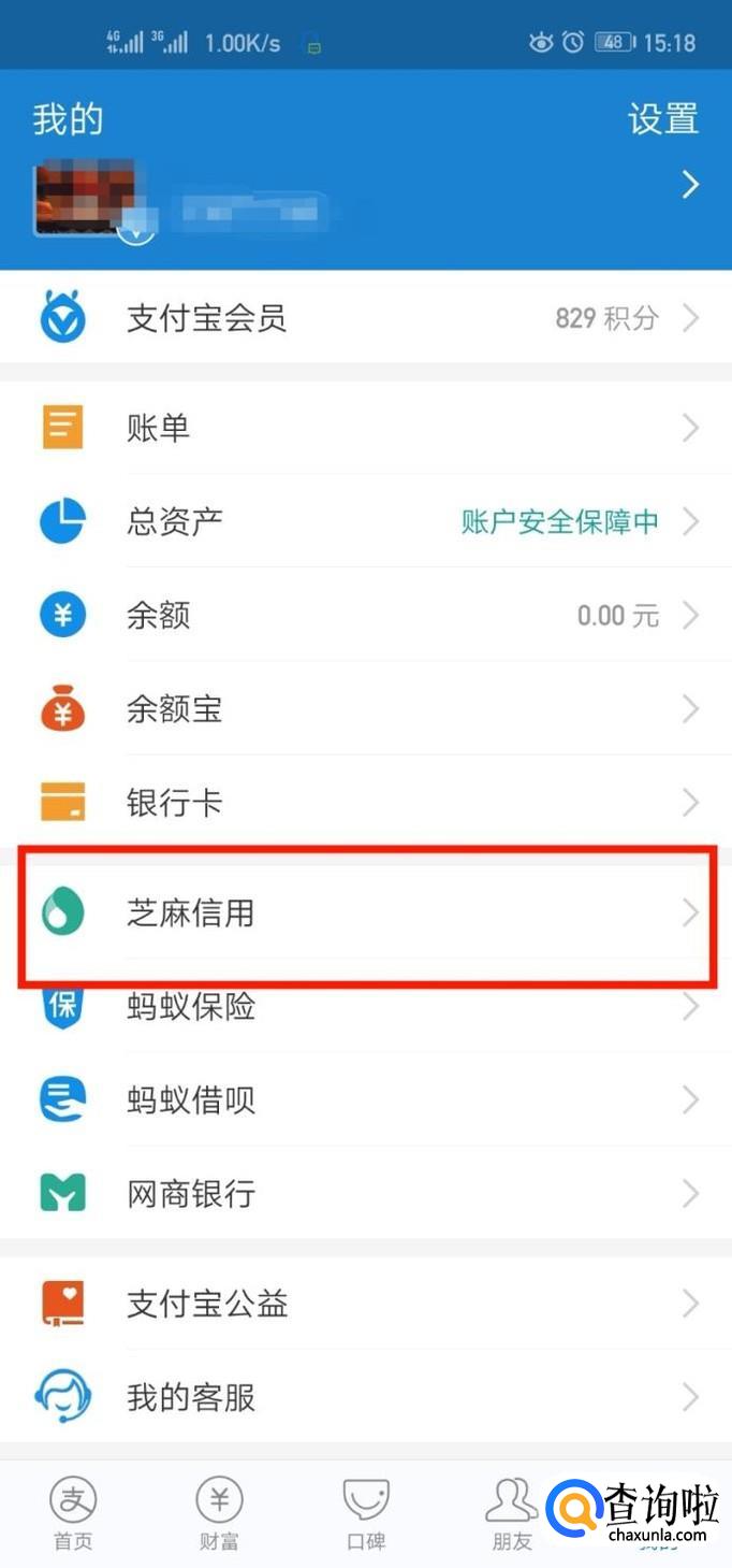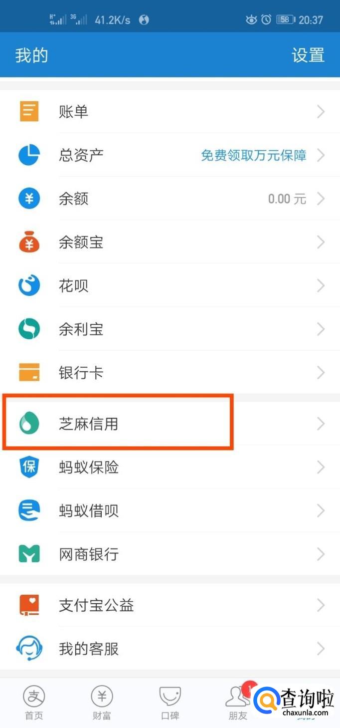 找到芝麻信用。