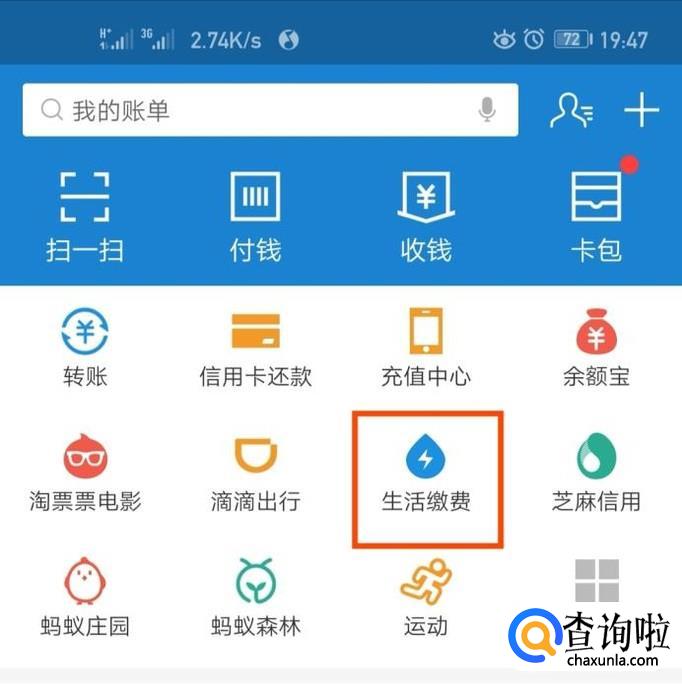 找到“生活缴费”。