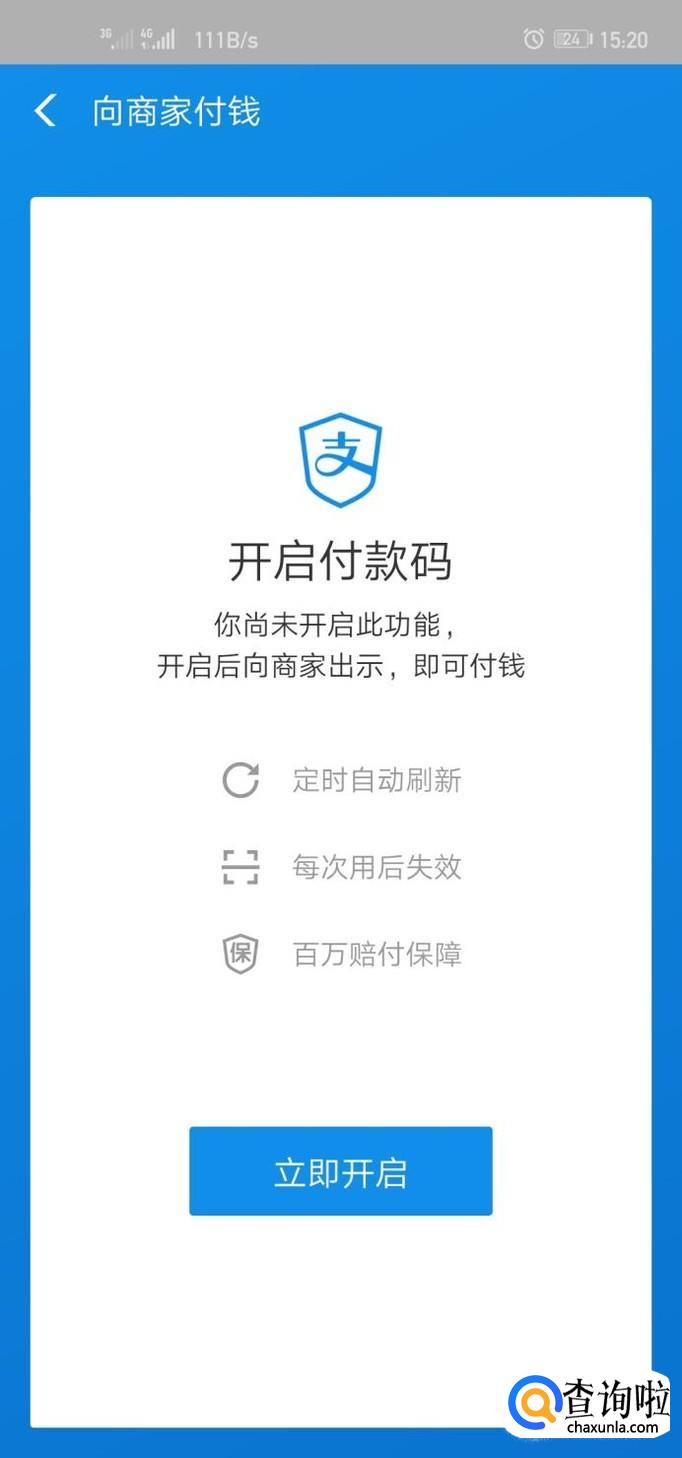 在支付宝首页搜索栏的下面,第二个功能就是“付钱”,点开之后就是一个付款码,买了东西之后,把付款码展示给商家,付款即可。