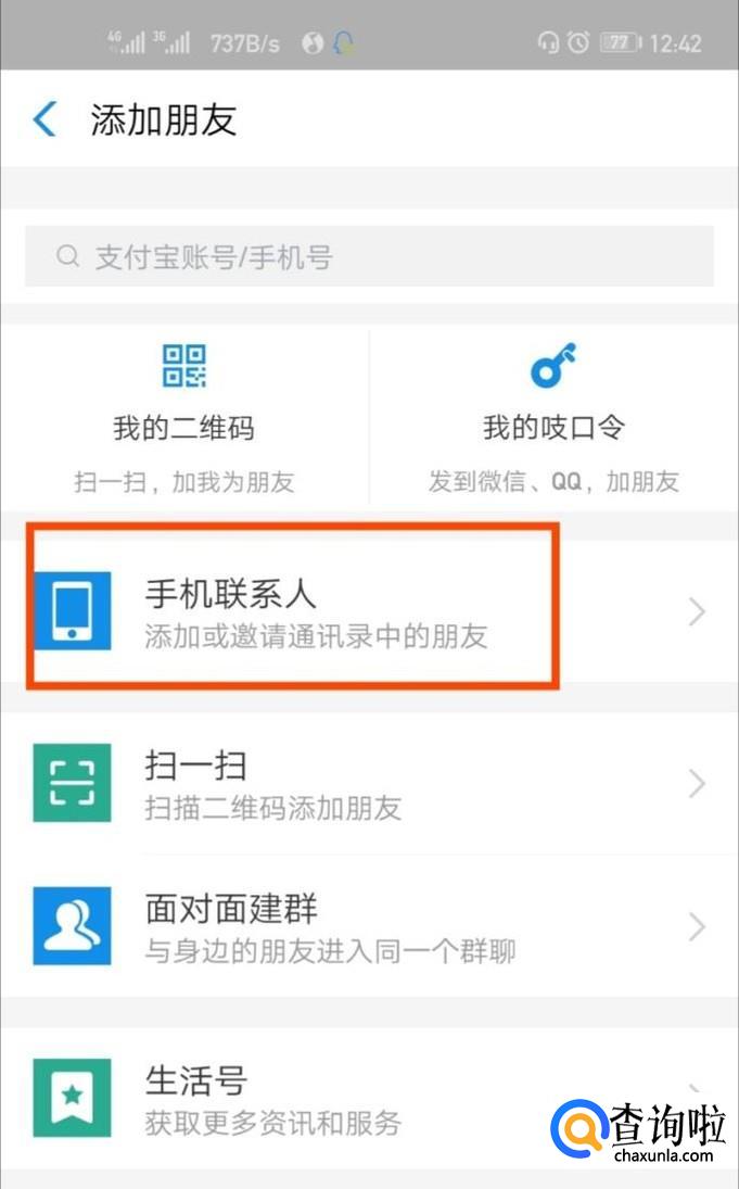 添加手机联系人为好友。