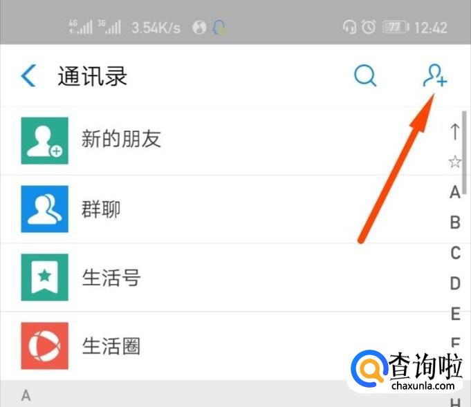 进入通讯录之后,点击右上角加好友的按钮。