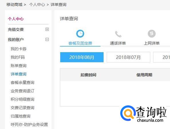 进入之后,即可看到每个月手机话费详细清单,如图所示。