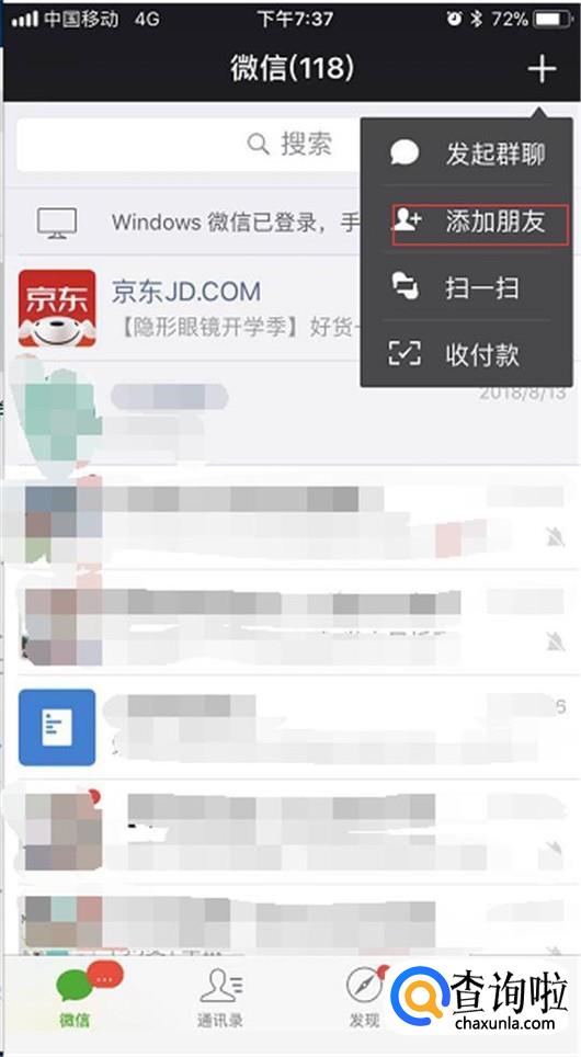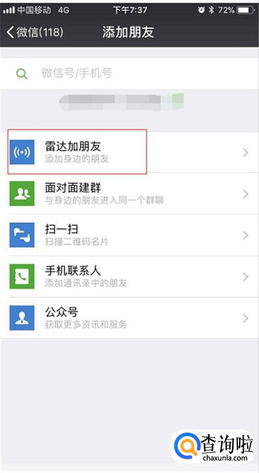 点击“添加朋友”,找到“雷达加朋友”,见下图