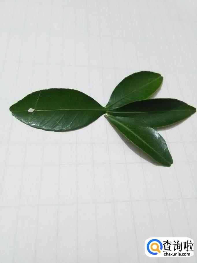 再选三片小一些的叶子,将每一片叶子的背面抹上胶棒,粘在小鱼身体的右侧,当作小鱼的三片尾巴。