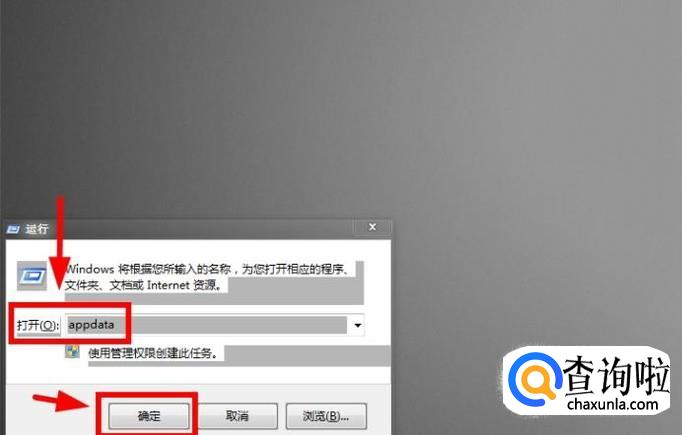 按住电脑键盘上的“Windows + R”键,弹出运行对话框,在运行对话框输入“appdata”命令,并点击“确定”