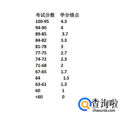 在国内很多高校都有这不一样的绩点计算方法,下面介绍两种绩点的算法。一种为国际通用的绩点计算方法。其具体的分数对应的绩点如下表。