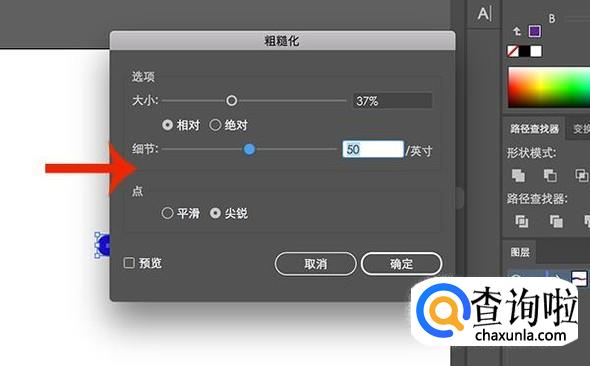 在变化效果粗糙化中,根据预览效果对数值进行调整,细节不用太高。
