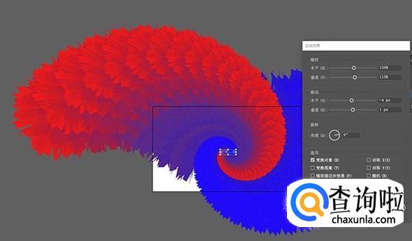 之后我们还可以利用扭曲和变换中的“变换”来调整图形,通过预览进行调整,这样我们就能够获得一个能够应用在很多地方的抽象画了。