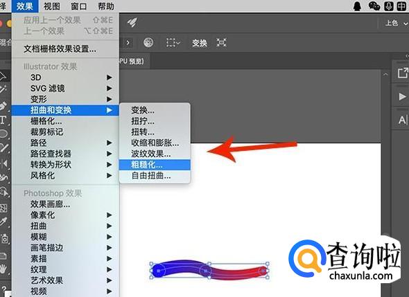 替换混合轴之后点击图形,选择“效果-扭曲和变换-粗糙化”
