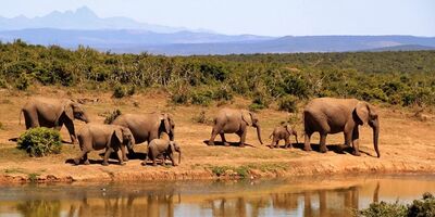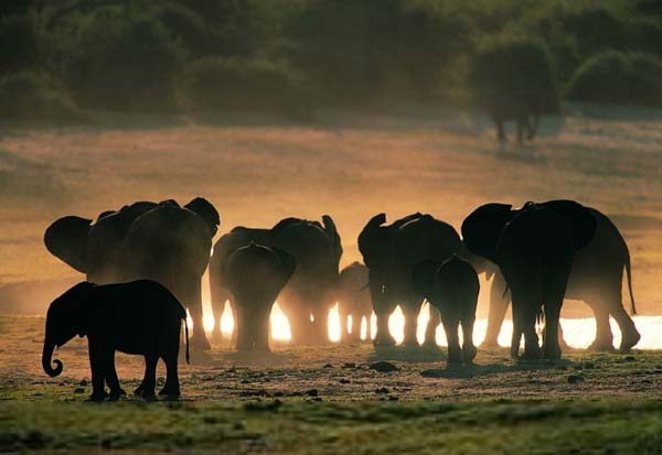 在象群中,三世同堂甚至四世同堂很常见——野生大象虽不像传说中那样能活100多岁,但正常寿命也有五六十岁。象群规模一般从10头以上到30多头不等,在非洲的湖泊附近或迁徙途中,有时还会有来自多个象群的上百头大象聚在一起。