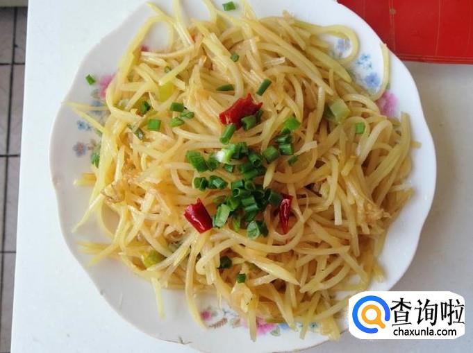 把去皮的土豆用擦子擦成土豆丝 ,擦完后用水冲掉多余的淀粉,最好是用清水泡一会,然后捞出土豆丝控水待用。
