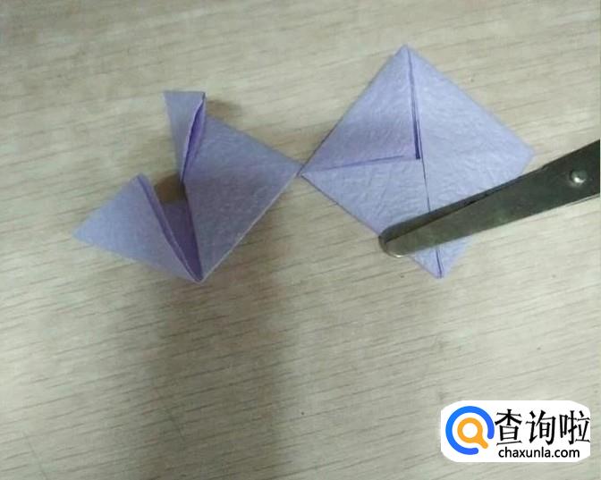 将左边的两个小三角折向右边的大三角。