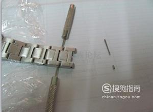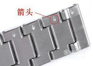金属的表带长了可能会比较麻烦一些,钢带靠近扣子的两边有一些箭头的标志,这就是联接杆。