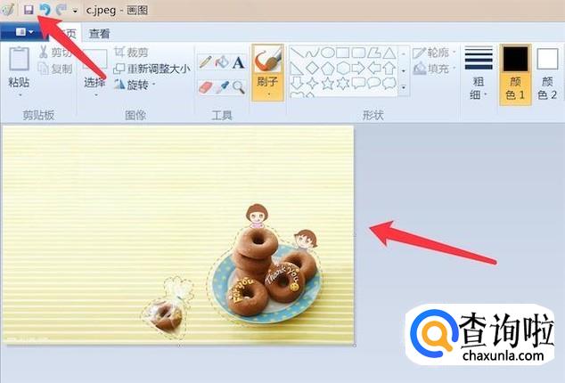 从画图上看,图片大小已经压缩变小了。点击菜单上的保存按钮,把图片保存就行了。