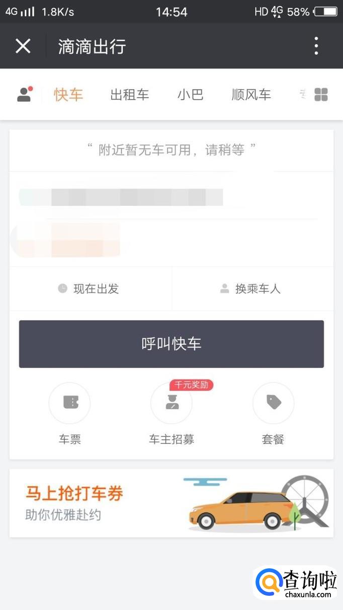 进入到滴滴出行后,选择你出行的目的地并呼叫快车,这时附近的滴滴会接到你的订单,司机接单后会来接你,接到你后他会点击已接到乘客;