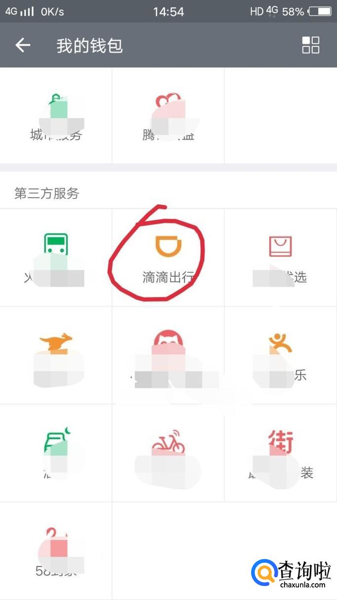 点击进入钱包后,找到滴滴出行一项,如下图所示点击确定并进入;