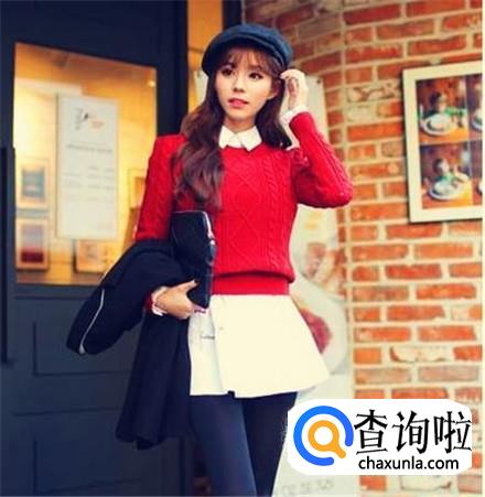 这一种毛衣衬衫的搭配方法很适合走可爱路线的女生,长版的白衬衫下摆就像是百褶裙一样可爱,红色短款毛衣让整个人可爱极了。