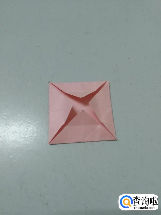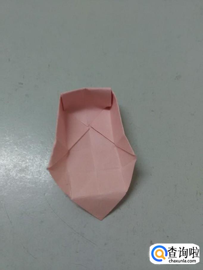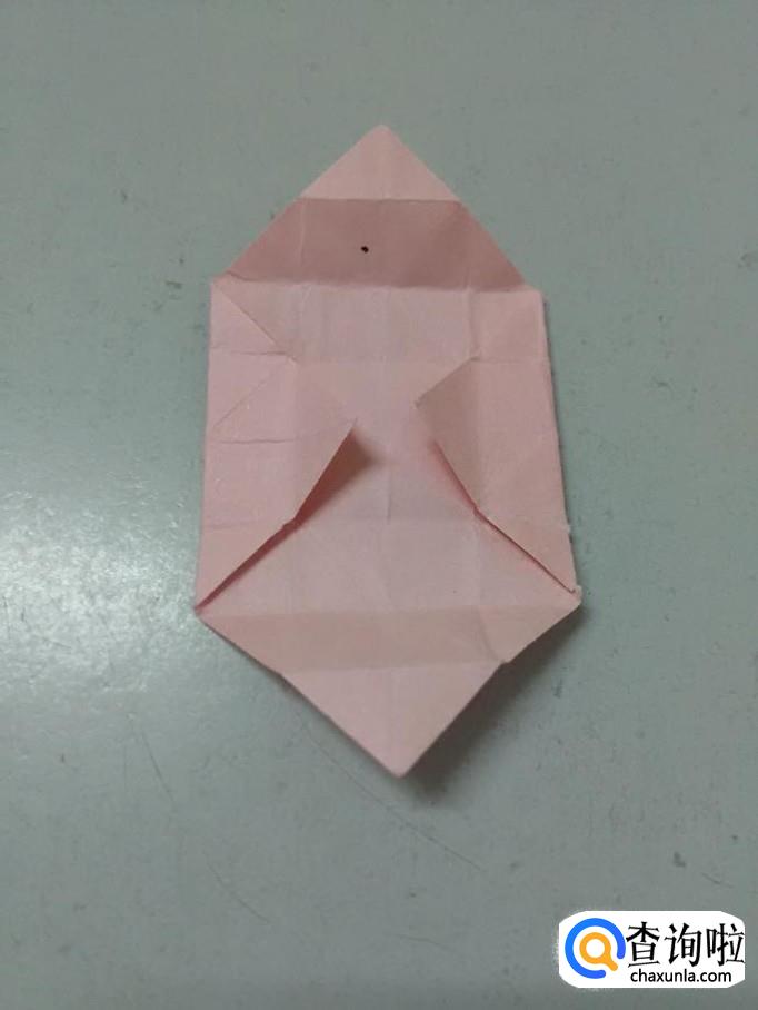 把上方的左右两边向中间折,然后用中间的角压住左右两边。