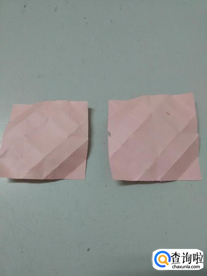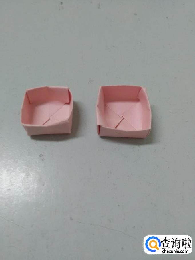 再将大的正方形用同样的方法折成小纸盒,现在就有两个纸盒了。
