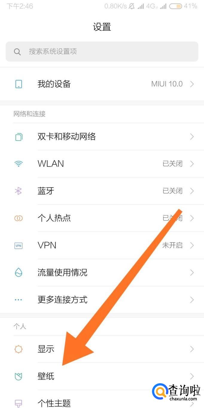 然后点击进入“壁纸”设置选项。