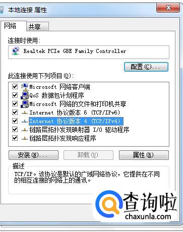 选择“Internet协议版本4(TCP/IPV4)”