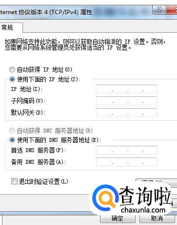 勾选“使用下面的IP地址”,输入相应的数据;