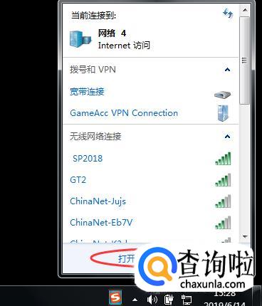 在电脑右下角点击“网络连接”,选择“打开网络和共享中心”;