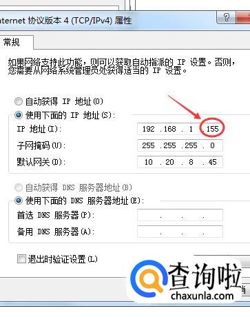 只修改“IP地址”的最后一个数,在0-255之间随意输入一个数字,直到连接上Internet为止,最后点击“确定”(以下数据只做参考使用);