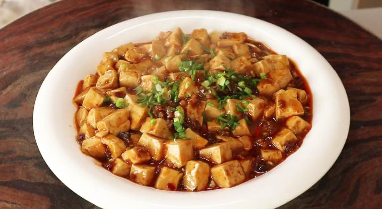 麻婆豆腐,是四川省传统名菜之一,属于川菜,主料为:豆腐,辅料为:蒜苗、牛肉沫(其他肉也可以),调料为:豆瓣、辣椒面和花椒面、酱油、生抽、老抽、糖、淀粉等,麻来自花椒,辣来自辣椒面,此菜成菜麻、辣、鲜、香、烫、翠、嫩、酥,将川菜麻辣味型的特点展现得淋漓尽致,如今,麻婆豆腐远渡重洋,在美国、加拿大、英国、法国、越南、新加坡、马来西亚、日本、澳大利亚等国安家落户,从一味家常小菜一跃而登上大雅之堂,成了国际名菜。2018年9月10日,“中国菜”正式发布,“麻婆豆腐“被评为“中国菜”四川十大经典名菜。