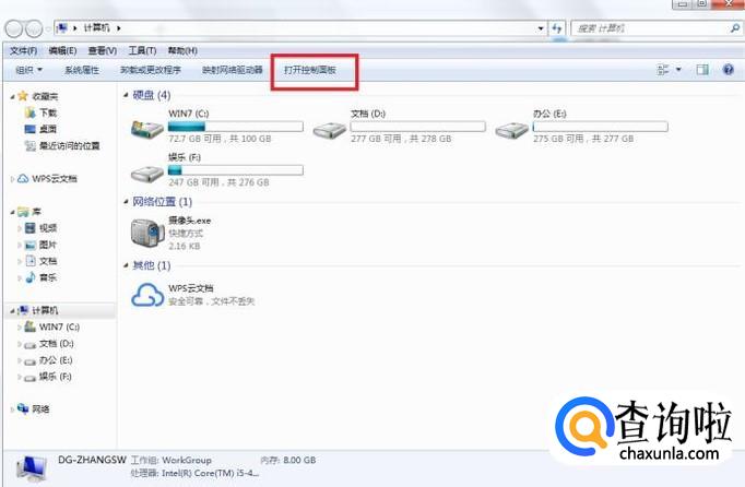 首先,打开控制面板,可以在“计算机/我的电脑”中点击上方的“打开控制面板”选项,或者直接从“开始”菜单中点击进入。