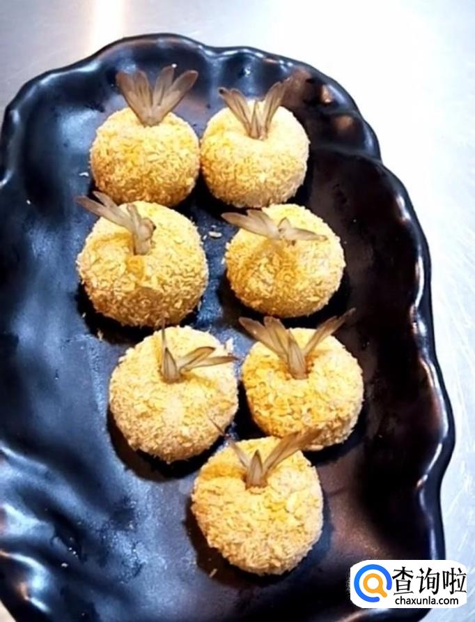最后装入盘中,美味的黄金虾球就制作完成啦!