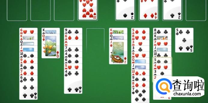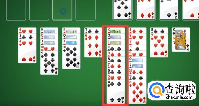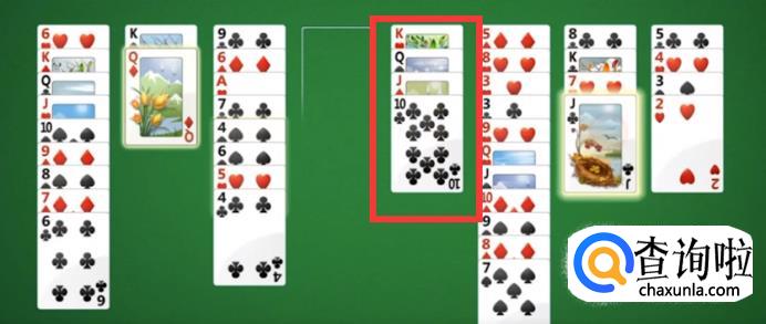 通过挪动纸牌,使一列的牌从K开始依次向小数排列,也就是K、Q、J、10、9、8、7、6、5、4、3、2、A。