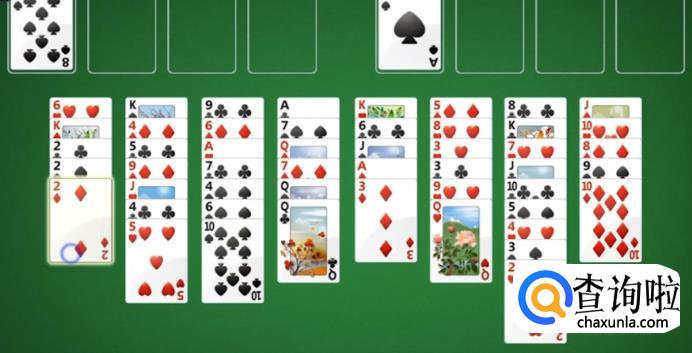 然后我们可以看到纸牌上方有八个格子,其中右边四个格子需要从A开始排列,左边四个格子是用来放置不需要挪动的牌。