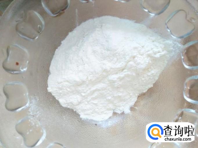 鸡腿就在那儿晾干,咱现在找一些面粉放在碗里。