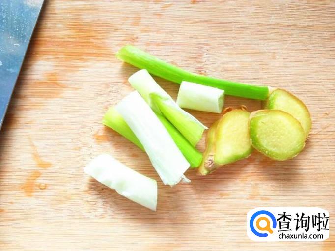 这期间别闲着,洗一颗小葱和一块生姜,小葱切成段,生姜切片待用。