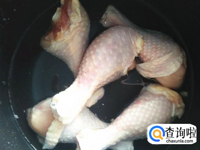 直接将鸡腿放进电饭煲里,加上清水没过鸡腿,按下蒸煮健,电饭煲就会自动工作。
