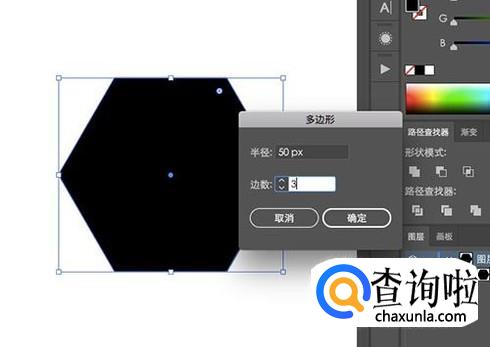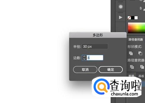 选择多边形工具之后按回车键进行设置面板,将边数调整为“6”,半径随意,点击“确定”