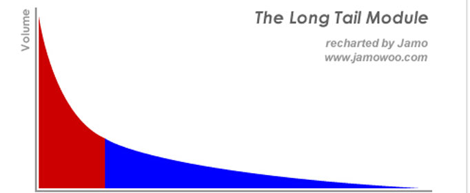 简单的说,所谓长尾理论是指,只要产品的存储和流通的渠道足够大,需求不旺或销量不佳的产品所共同占据的市场份额可以和那些少数热销产品所占据的市场份额相匹敌甚至更大,即众多小市场汇聚成可产生与主流相匹敌的市场能量。也就是说,企业的销售量不在于传统需求曲线上那个代表“畅销商品”的头部,而是那条代表“冷门商品”经常为人遗忘的长尾。举例来说,一家大型书店通常可摆放10万本书,但亚马逊网络书店的图书销售额中,有四分之一来自排名10万以后的书籍。这些“冷门”书籍的销售比例正以高速成长,预估未来可占整个书市的一半。这意味着消费者在面对无限的选择时,真正想要的东西、和想要取得的渠道都出现了重大的变化,一套崭新的商业模式也跟着崛起。简而言之,长尾所涉及的冷门产品涵盖了几乎更多人的需求,当有了需求后,会有更多的人意识到这种需求,从而使冷门不再冷门。