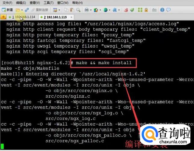编译完以后执行make和make install两个命令进行nginx的安装,如下图所示