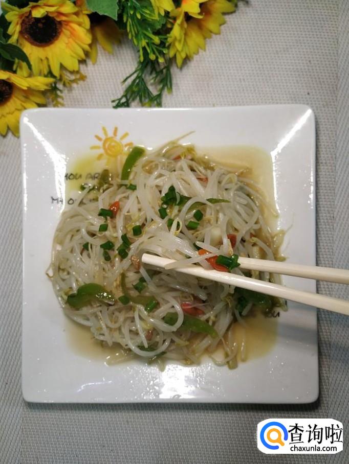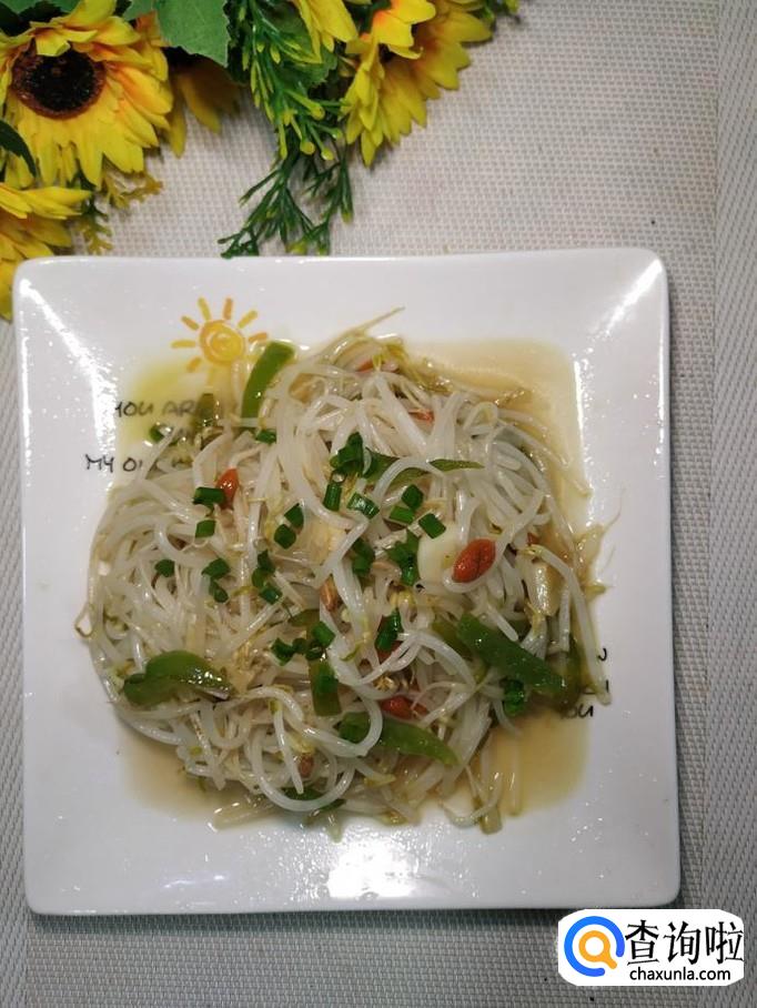 准备适量绿豆芽,用清水洗净后,沥干水分备用,豆芽尽量买的新鲜一些,这样做出来的口感更好。