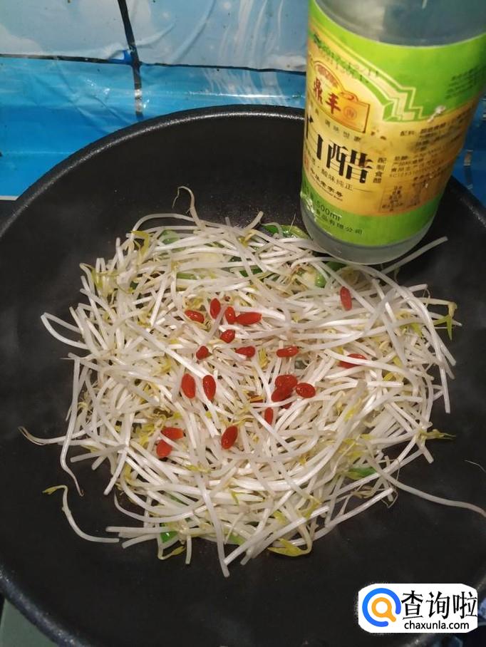 豆芽适量,枸杞子适量,小葱适量,蒜适量,青椒适量,盐适量,白醋适量,白砂糖适量。