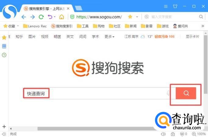 首先,我们打开我们的电脑,然后我们打开我们电脑上面的浏览器,之后我们登录搜狗搜索网站,然后我们输入快递查询,之后我们点击后面的搜索按钮;