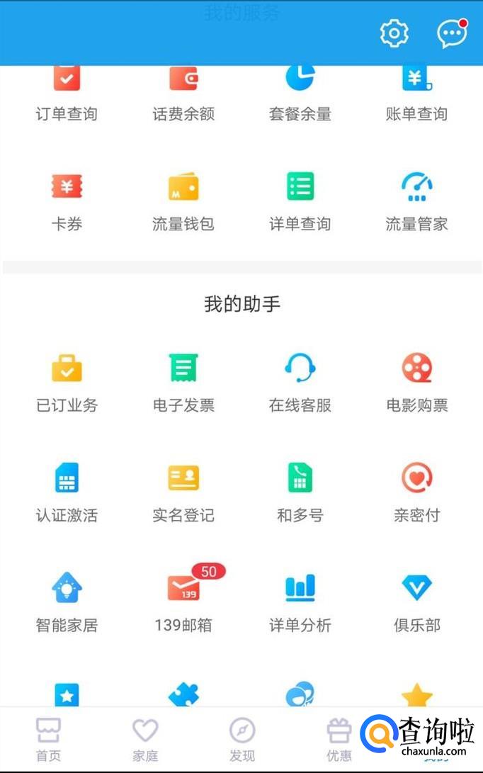 打开手机上的中国移动app进入,然后登录个人信息,在“我的”界面处,点击“我的助手”里面的“已订业务”进入。